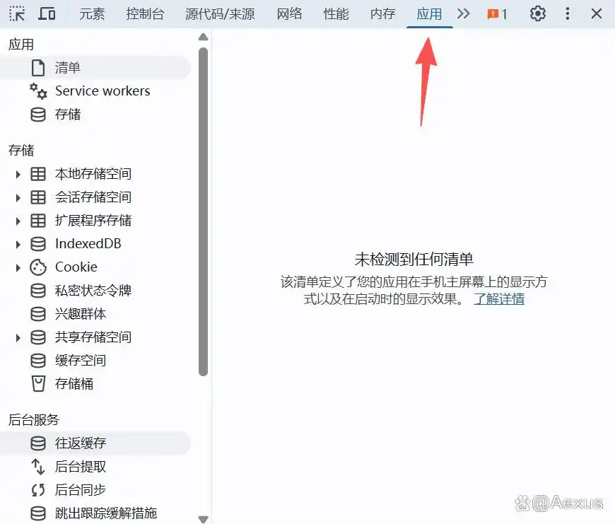 按 F12 切换到 应用 标签