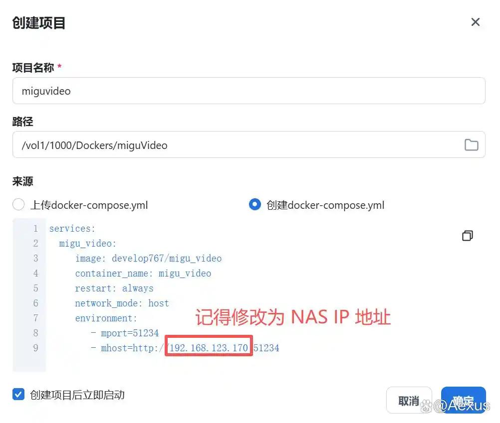 NASIP: 记得改为你自己部署NAS的IP地址。例如:192.168.123.170